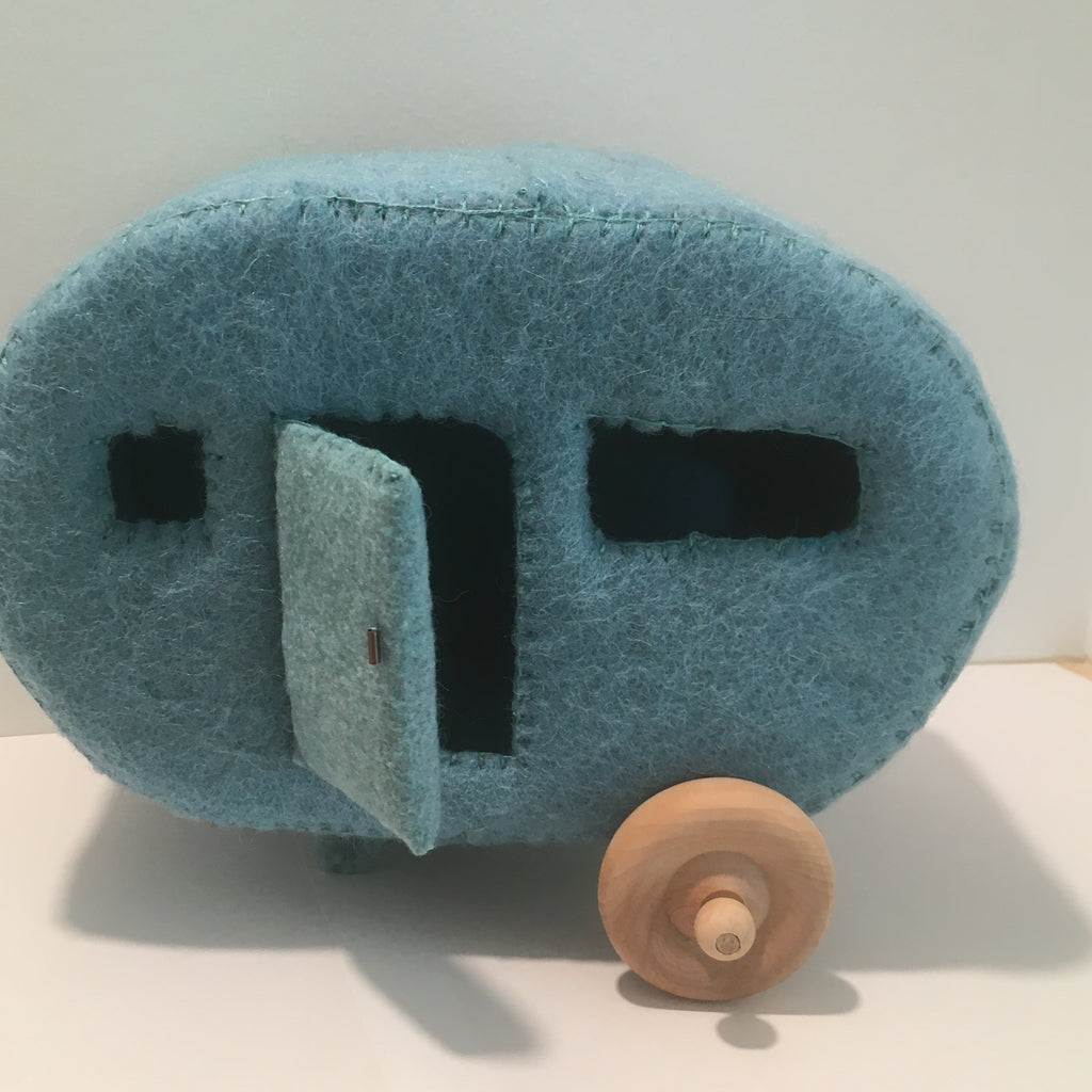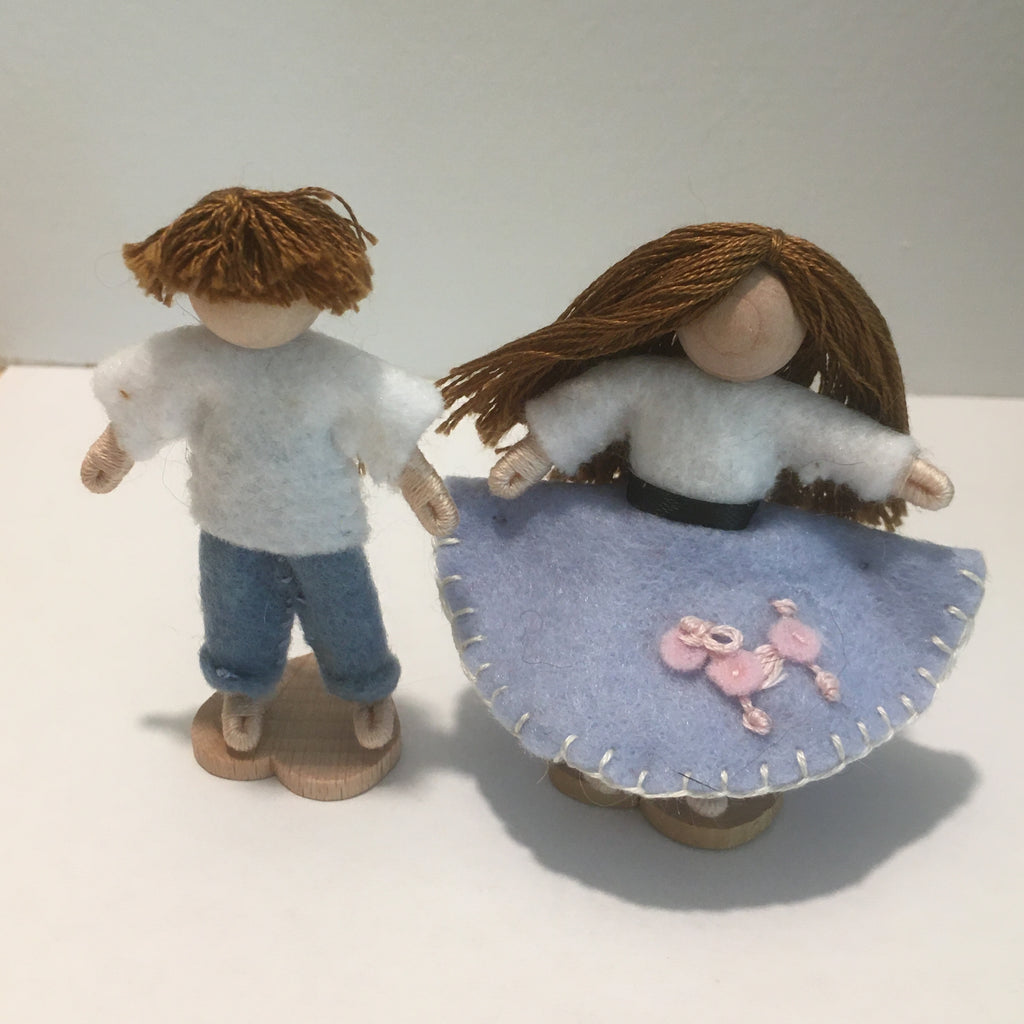 An iconic 1950's camping set of Littles has joined in the fun.  This 3 piece set is sure to set the stage for another adventure. The caravan camper comes ready to travel down highway 66 or at least across your living room floor.     One little comes dressed in a poodle skirt, the second in a classic white t-shirt and jeans.