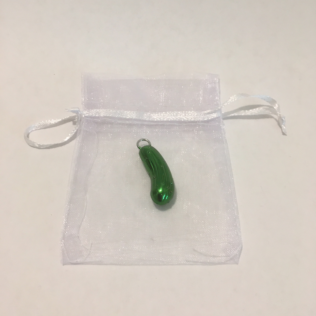 this itsy-bitsy pickle is a FIND.... barely 1.25" with loop to add a hook or wear as a charm