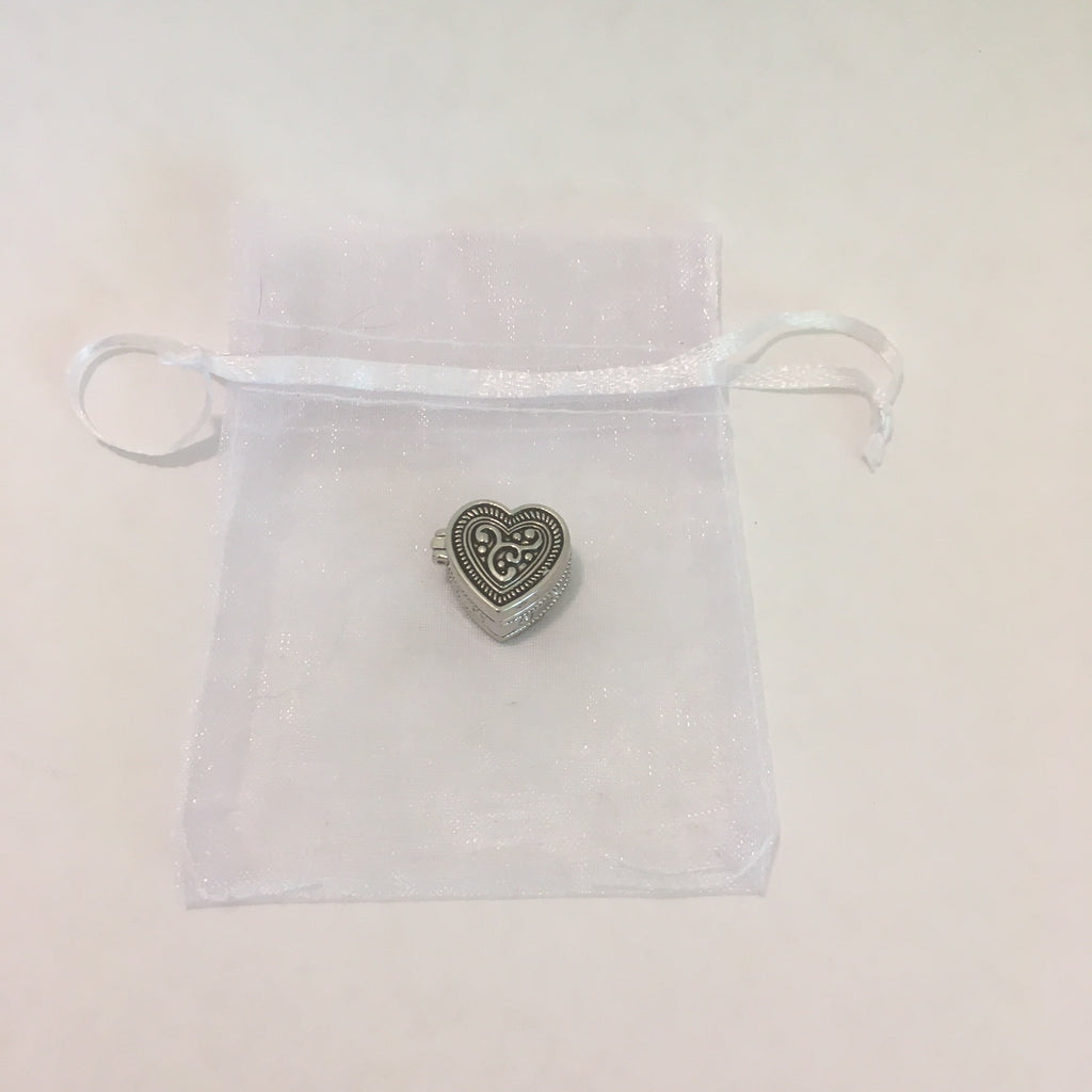 A tiny metal heart that is a box too, who could resist? The tops have a variety of designs and each has a magnetic closure.