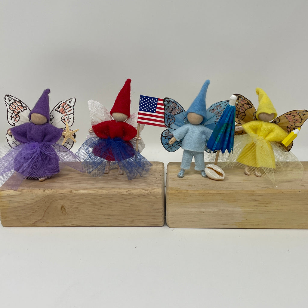 Flutter through each year celebrating the magic of each season with our Calendar Fairies. These magical little fairies are the perfect pocket plaything for dollhouses, fairy gardens, or holiday table. Each is a one-of-a-kind original. Each fairy is dressed according to the month's celebrations. Historically they are a best seller!