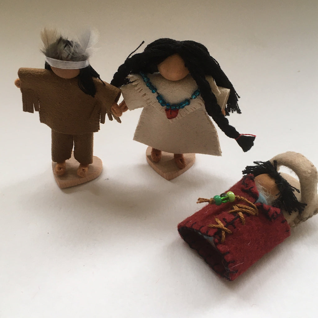 5 piece set contains a tepee, a canoe, 2 Littles, and a cradle board with a removable papoose.
