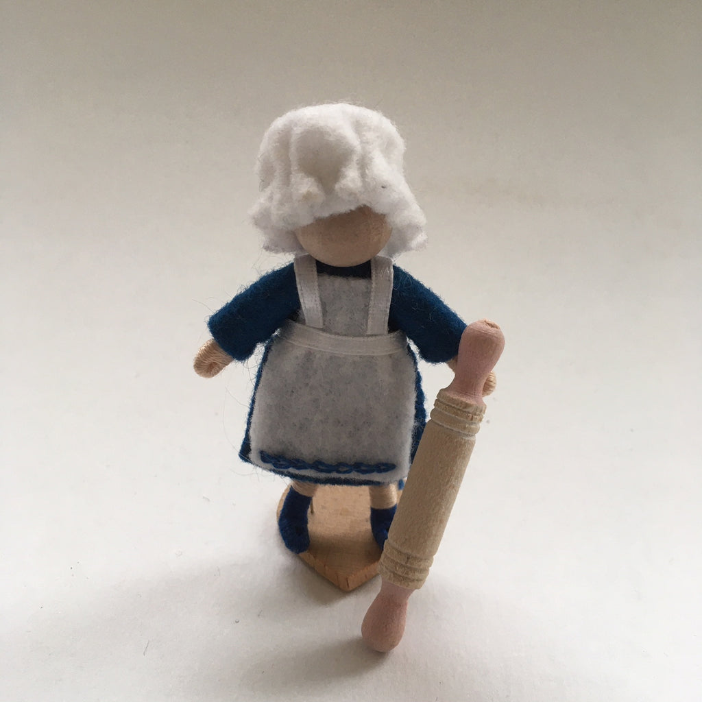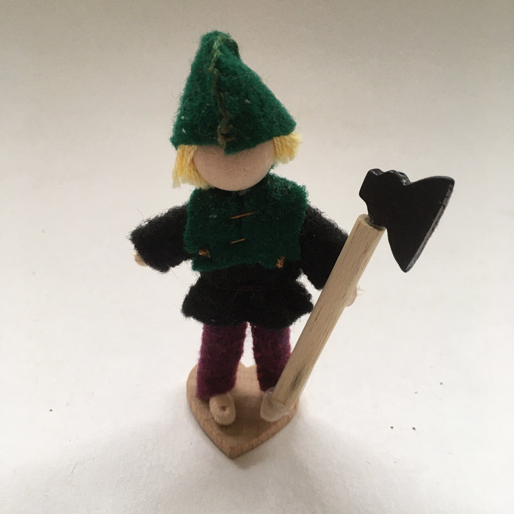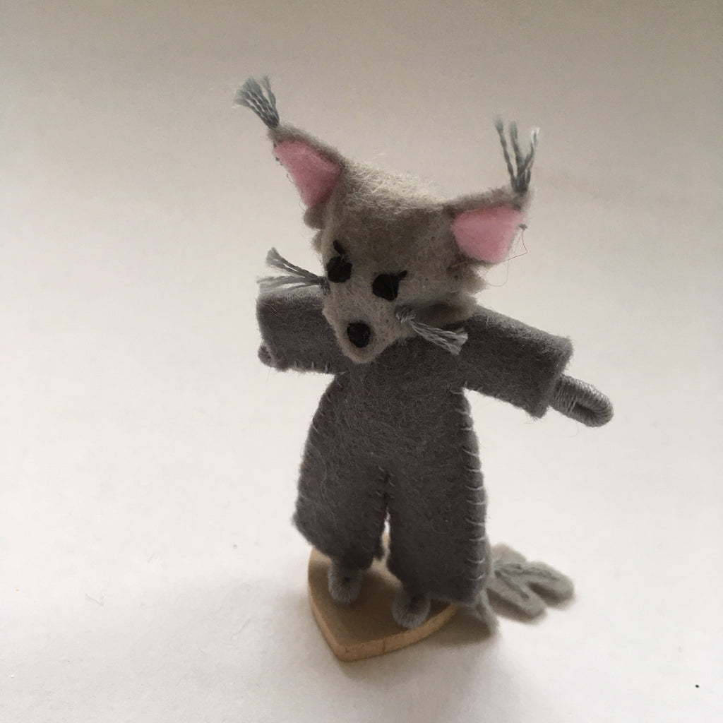 This 7 piece set contains a felted stone cottage, Red,and her basket, Gran and her rolling pin, Woodie the woodsman, and Wolfie a friend tdressed in a wolf costume