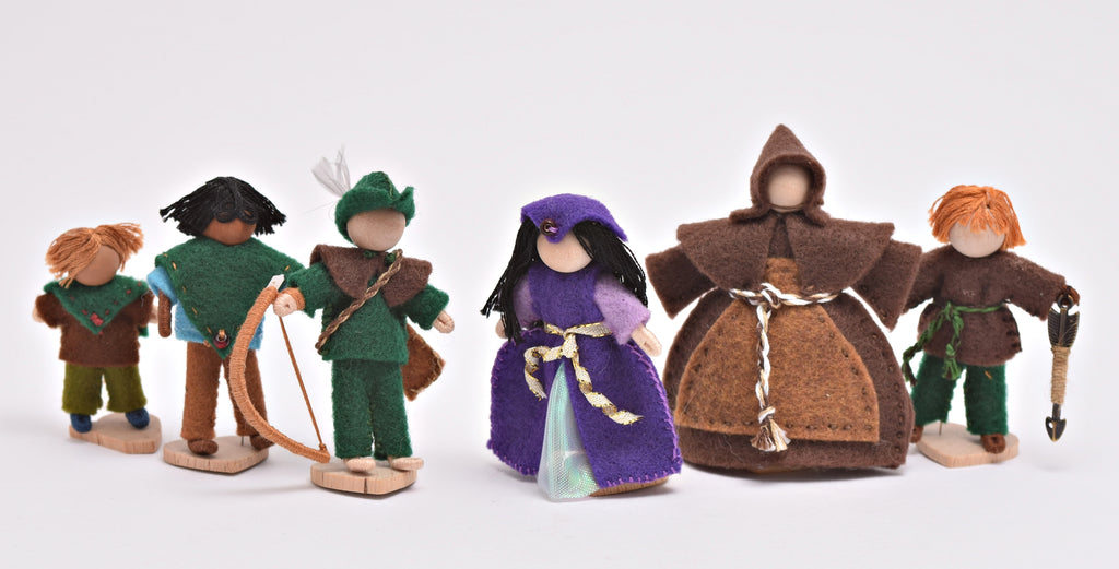 6 piece set contains: Robin, Maid Marian, Friar Tuck, 2 Merry friends and a child